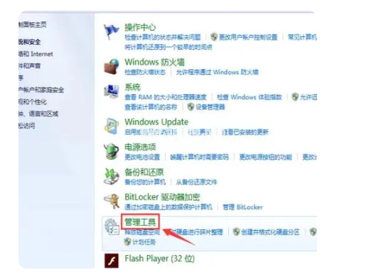 2、在系統(tǒng)和安全中,點擊打開管理工具;