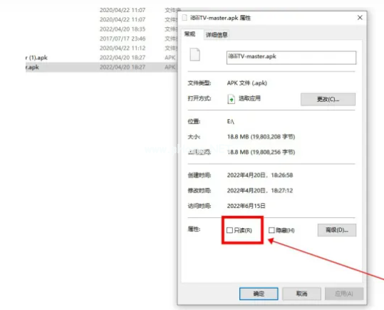 3、取消勾選只讀再刪除文件在下方屬性中取消勾選“只讀”,再回去刪除文件就可以啦。