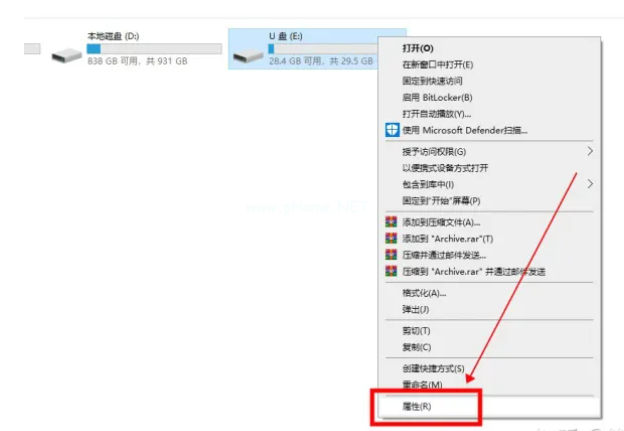 1、電腦插入U盤右鍵點(diǎn)擊屬性電腦接入U盤,關(guān)閉彈出的格式化窗口,鼠標(biāo)右鍵U盤點(diǎn)擊“屬性”。