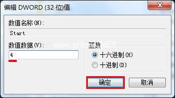 3、打開鍵值編輯框后,只需將原先的數(shù)值數(shù)據(jù)3改為4即可,點擊“確定”按鈕保存,如下圖所示: