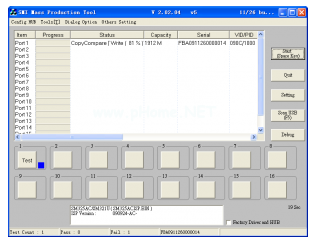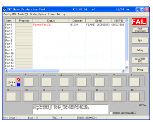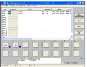 知道自己u盤的芯片信號(hào)的話,那么就到網(wǎng)絡(luò)上找對(duì)應(yīng)的量產(chǎn)工具,這里我已經(jīng)有了適合本u盤使用的量產(chǎn)工具:鼠標(biāo)點(diǎn)擊下載SMI_I1126.7z,工具運(yùn)行后如圖2所示,當(dāng)u盤已經(jīng)插入時(shí)將在對(duì)應(yīng)的地方以顏色表示.