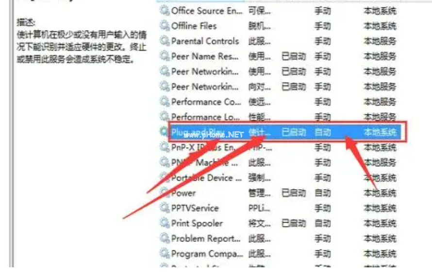 4、找到Plug and Play,觀察是否開(kāi)啟,如果是關(guān)閉狀態(tài)則開(kāi)啟。