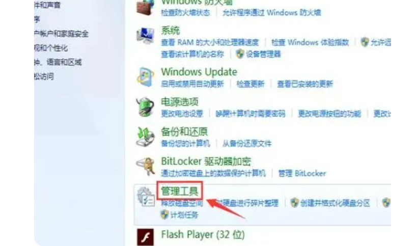 2、在系統(tǒng)和管理中,點(diǎn)擊進(jìn)入管理工具;