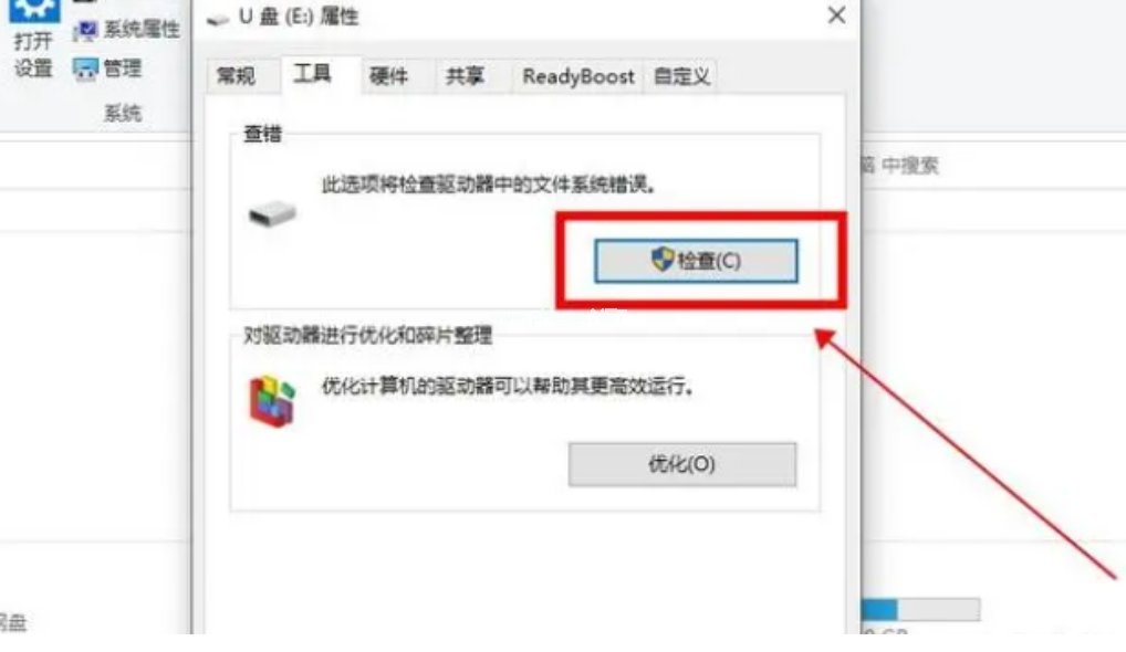 2、在U盤屬性窗口中,點擊【工具】選項。