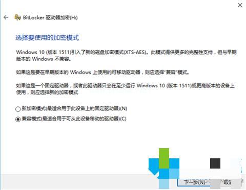 6、選擇要使用的加密模式,移動(dòng)U盤加密,兼容模式即可。