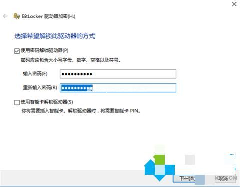 2、選擇解鎖方式,選擇使用密碼解鎖此驅(qū)動(dòng)器,輸入想要設(shè)置的密碼。