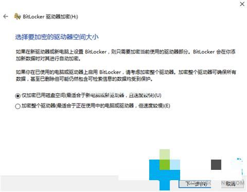 5、選擇要加密的驅(qū)動(dòng)器空間大小,根據(jù)提示按自己的需求選擇即可。