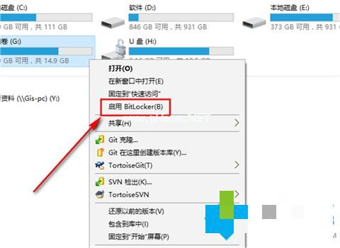 1、插入U(xiǎn)盤在要加密的U盤上右鍵,點(diǎn)擊【啟用BitLocker】。