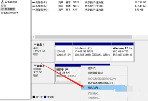 4、在磁盤區(qū)域找到u盤盤符并點擊選中。