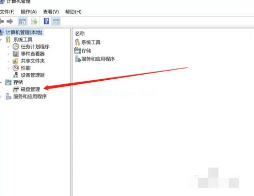 3、在管愁久芬理頁面中左側菜單欄中找到磁盤管理并點擊打開。