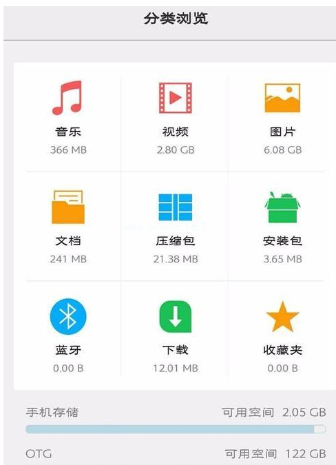 4、然后在跳轉(zhuǎn)后的OTG這面,打開手機儲存的分類瀏覽。