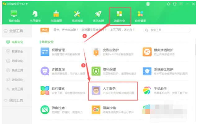 1.點擊進(jìn)入“360安全衛(wèi)士”程序后,打開功能大全界面,如圖所示。