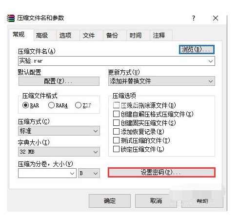 3、在壓縮文件名和參數(shù)窗口界面下方找到并點(diǎn)擊設(shè)置密碼。