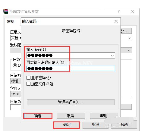 4、輸入兩次加密的密碼,依次點(diǎn)擊確定,待壓縮完成。