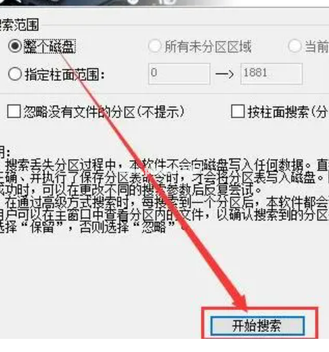 打開DiskGenius分區(qū)工具,進(jìn)入搜索已丟失分區(qū)窗口中,勾選整個(gè)磁盤,點(diǎn)擊“開始搜索”,待搜索完成返回打開U盤即可。
