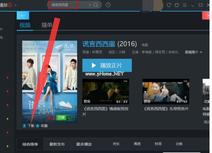 2、視頻資源出來(lái)之后,在電影宣傳附近會(huì)有一個(gè)下載的標(biāo)志,點(diǎn)擊下載按鈕: