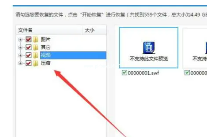 4、掃描結(jié)束后,選擇要恢復(fù)的文件即可開始恢復(fù)需要的數(shù)據(jù)文件。