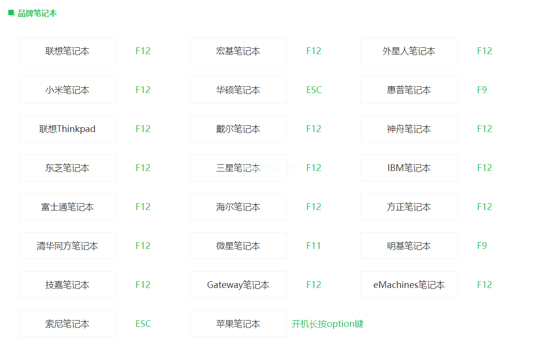 二、u盤啟動(dòng)快捷鍵全集
