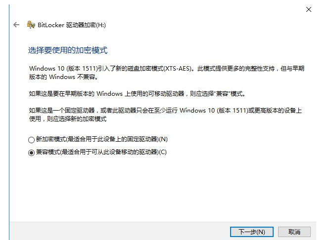 6、給移動(dòng)U盤加密選擇兼容模式。