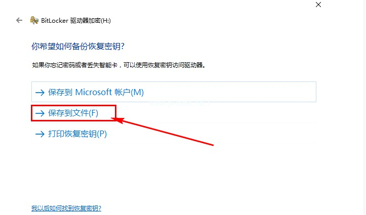 3、為了防止你忘記密碼后打不開u盤,建議你備份恢復(fù)鑰匙,選擇“保存文件”即可。這樣有助于當(dāng)你不記得密碼的時(shí)候,可以使用這個(gè)密鑰重置你的密碼。