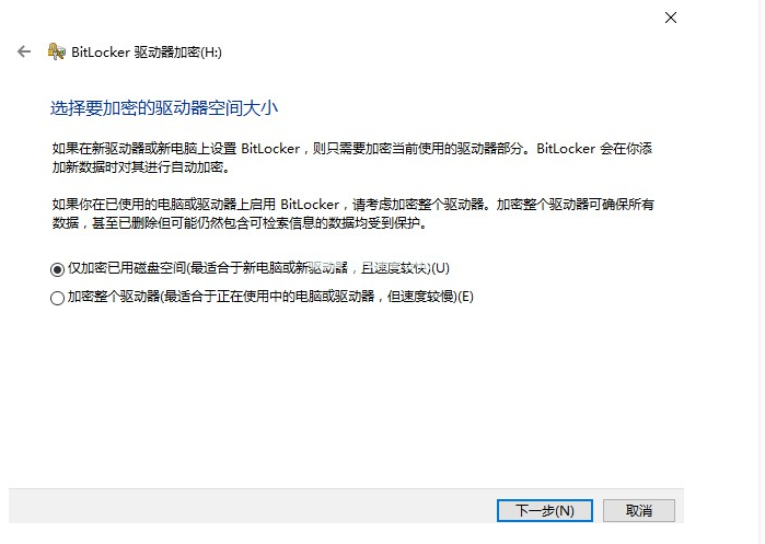 5、選擇要加密的驅(qū)動(dòng)器空間大小,根據(jù)提示按自己的需求選擇即可。