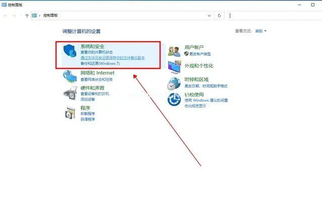 2、接著在控制面板中,點(diǎn)擊選擇上方“系統(tǒng)和安全”。