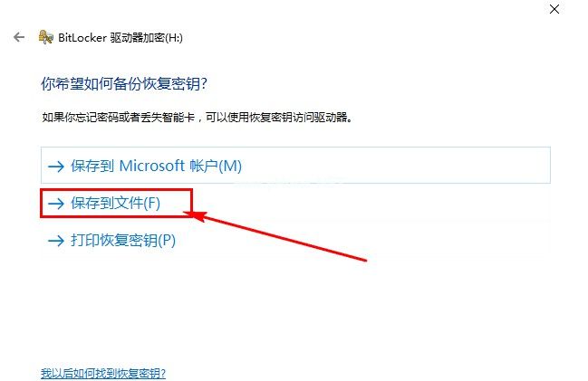 3、為了防止你忘記密碼后打不開u盤,建議你備份恢復(fù)鑰匙,選擇“保存文件”即可。這樣有助于當(dāng)你不記得密碼的時(shí)候,可以使用這個(gè)密鑰重置你的密碼。