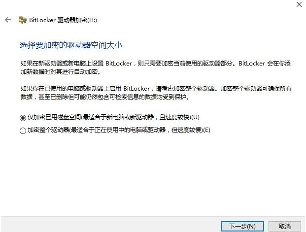 5、選擇要加密的驅(qū)動(dòng)器空間大小,根據(jù)提示按自己的需求選擇即可。