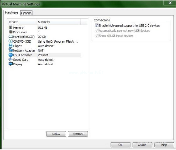 1、首先運(yùn)行虛擬機(jī),然后依次查看“工具欄” – “VM” – “Settings” – “Hardware”,檢查下“Device”欄目中有沒(méi)有“USB Controller”,要是沒(méi)有ADD的話(huà)那么添加 一個(gè)。如果有,那么我們繼續(xù)點(diǎn)擊它,然后查看右邊是否全部都勾選了,如下圖所示: