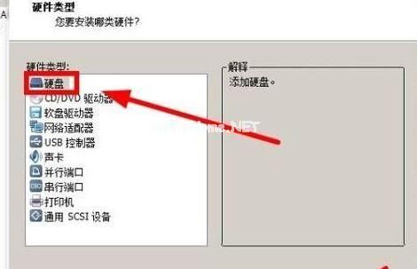 3、在硬件類(lèi)型界面,選擇“硬盤(pán)”,點(diǎn)擊下一步;