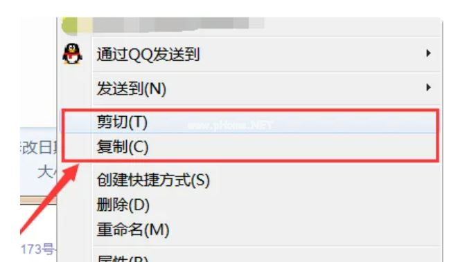 4、鼠標(biāo)右鍵單擊需要復(fù)制的“文件”后選擇“剪貼”或者“復(fù)制”選項。