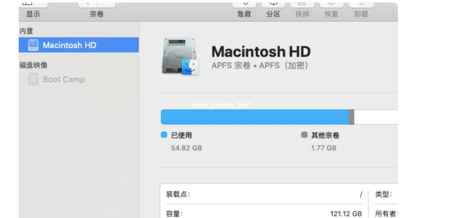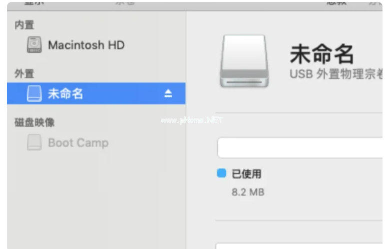 4、插入優(yōu)盤,選中要格式化的盤。這個(gè)操作在mac上叫“抹掉”。