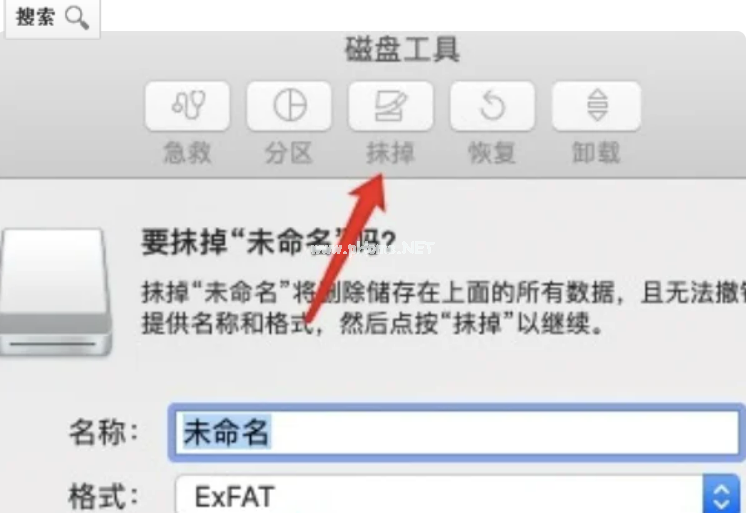 5、點(diǎn)擊上方的“抹掉”,再點(diǎn)擊下面的“抹掉”。這樣U盤無論是在windows上還是在mac上都可以自由的進(jìn)行讀寫了。完成。