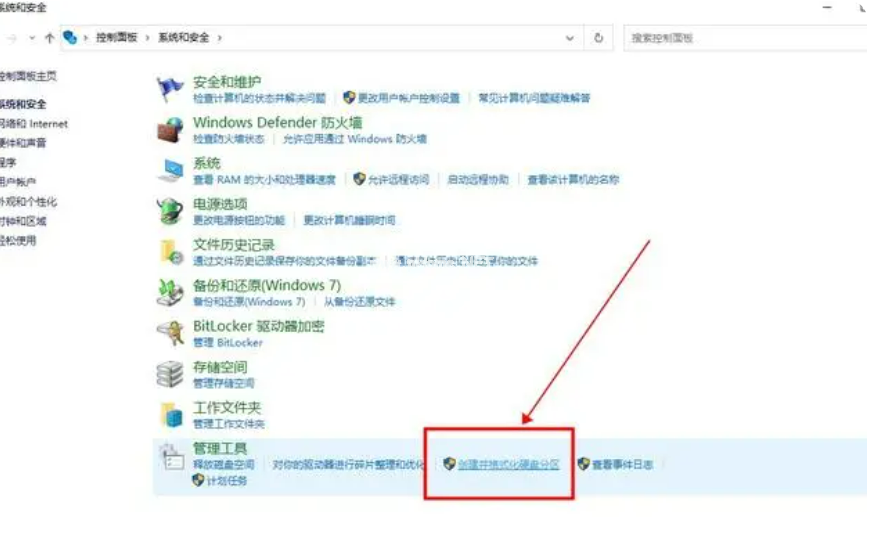 3、然后點(diǎn)擊管理工具下的“創(chuàng)建并格式化硬盤分區(qū)”;