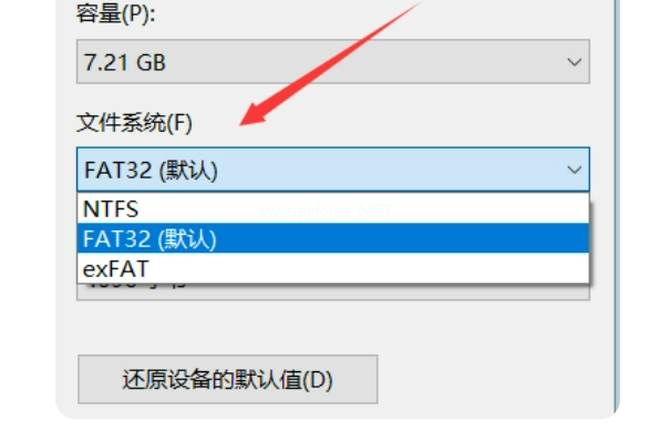 3、接著在彈出的窗口中,點(diǎn)擊文件系統(tǒng),在該欄中點(diǎn)擊選擇FAT32格式;