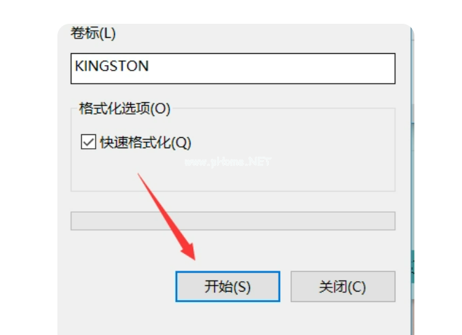 4、下方還有一個快速格式化的選項(xiàng),勾選后點(diǎn)擊“開始”即可。