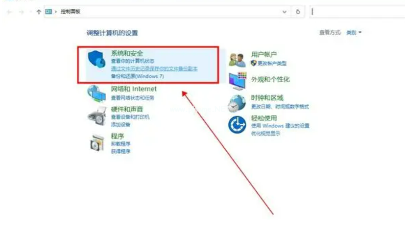 2、在控制面板中,點(diǎn)擊選擇上方“系統(tǒng)和安全”;