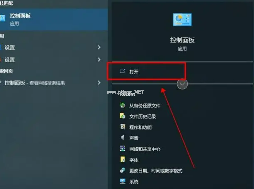 1、U盤插入電腦后,搜索并點(diǎn)擊打開“控制面板”;