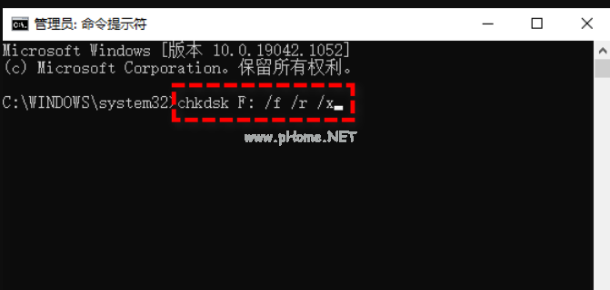 2. 輸入“chkdsk X:/f /r /x”命令,其中X為U盤的驅(qū)動(dòng)器號(hào),等待命令執(zhí)行完畢即可。