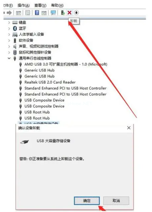 4. 右鍵點(diǎn)擊該設(shè)備,選擇“卸載設(shè)備”,并在彈出的窗口中點(diǎn)擊“確定”。