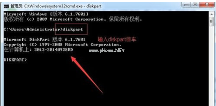 2、在打開的命令提示符窗口中輸入“diskpart”并按回車鍵。