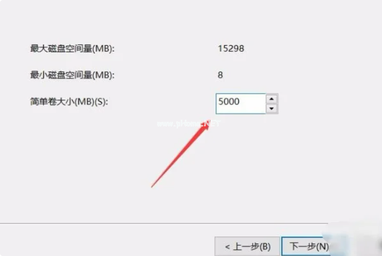 6、在彈出的窗口中輸入要建立U盤分區(qū)的大小,例如5G的分區(qū)可輸入5000,然后點(diǎn)擊下一步按鈕。