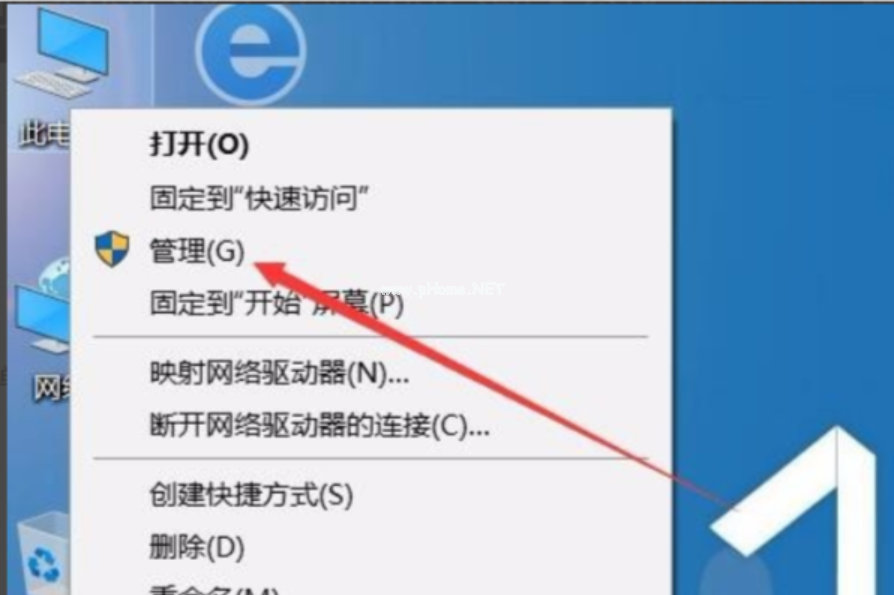 1、在電腦系統(tǒng)桌面,右鍵點(diǎn)擊“此電腦”圖標(biāo),選擇“管理”菜單項(xiàng)。
