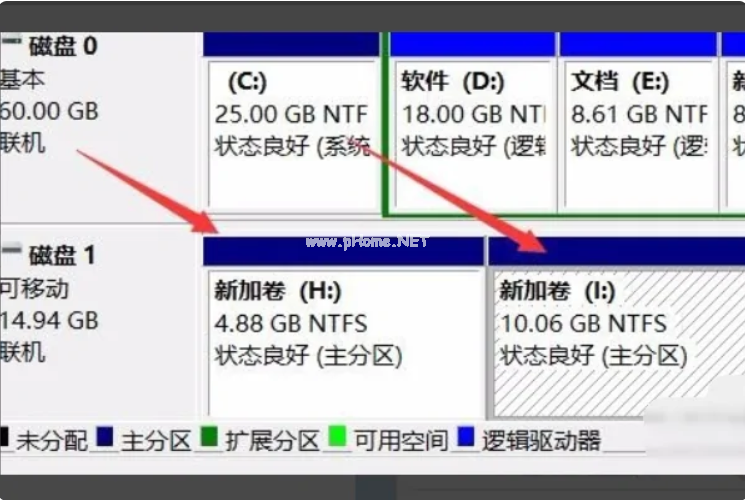 8、重復(fù)以上步驟,將未分配的區(qū)域建立新的分區(qū),方便管理其中的文件。