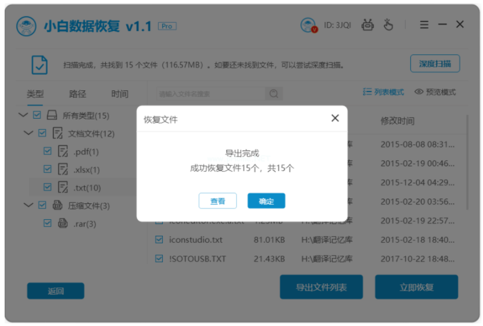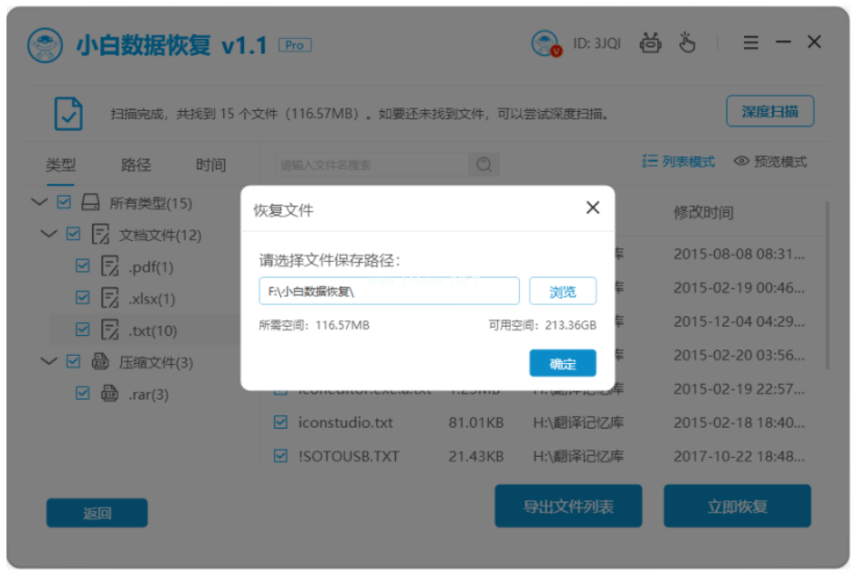 3、掃描完成,可通過(guò)文件類型/大小/路徑等方式快速篩選出所需文件,點(diǎn)擊“立即恢復(fù)”。