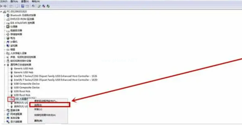 4、對(duì)這個(gè)“USB大容量存儲(chǔ)設(shè)備”右鍵,選擇啟用就可以了。