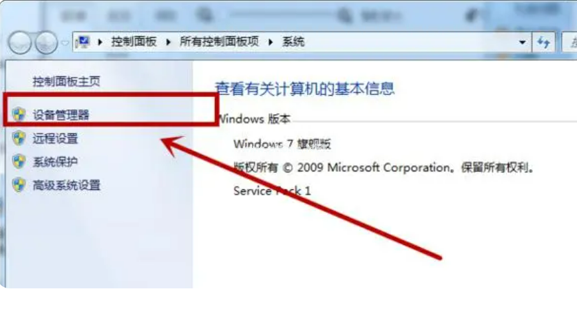 2、進(jìn)入電腦屬性窗口中,我們點(diǎn)擊選擇“設(shè)備管理器”;