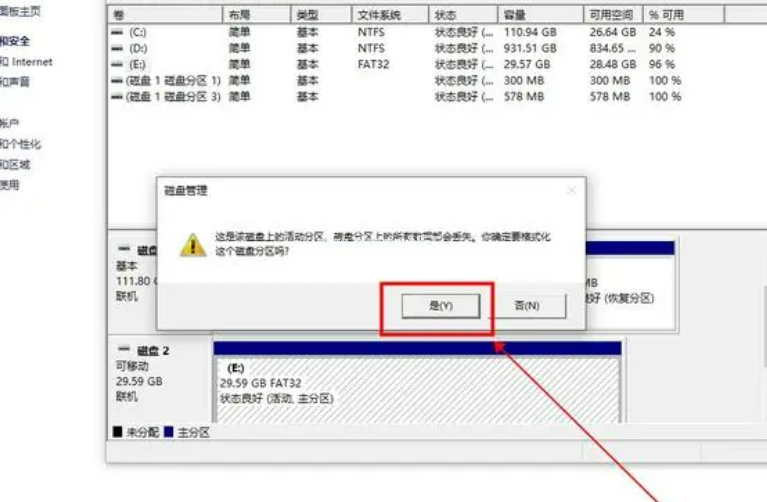 5、這樣會彈出警告提示,確認無誤后點擊“是”開始格式化即可。