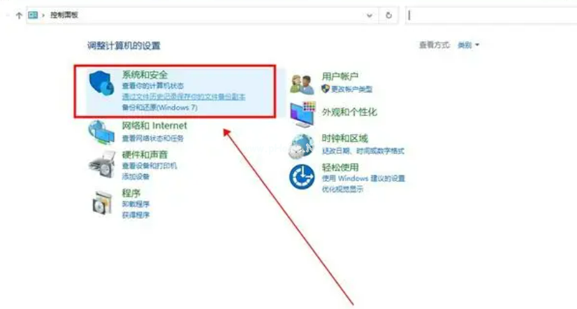 2、在控制面板中,點擊選擇第一個“系統(tǒng)和安全”;