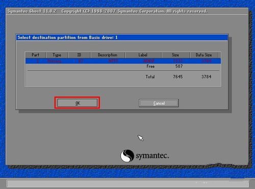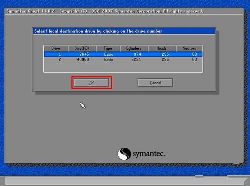 在接下來的窗口中選擇“2加載GHOST自帶u盤驅(qū)動(手動)”并在下方“請選擇相應(yīng)的序號來執(zhí)行任務(wù)__”的橫線處輸入“2”;當(dāng)我們輸入“2”以后,便會自動的跳轉(zhuǎn)到如下圖所示的界面,我們只需要點擊“OK”按鈕即可;